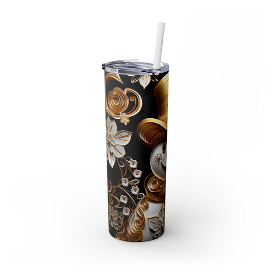 ~Gold Snowman~ Christmas Skinny Tumbler with Straw, 20oz