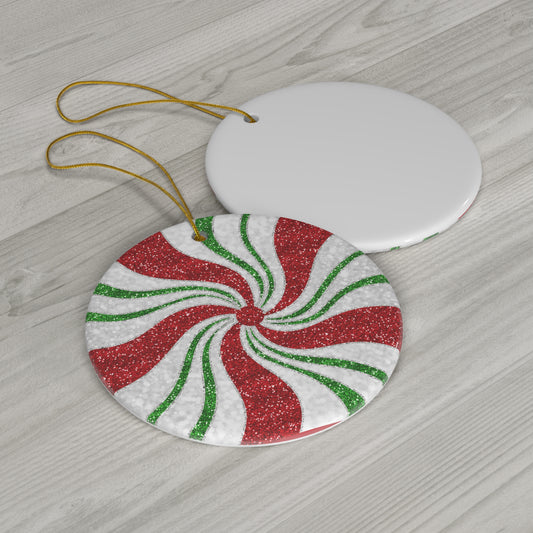 ~Red & Green Peppermint Candy~ Ceramic Ornament