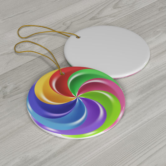 ~Rainbow Peppermint Candy~ Ceramic Ornament