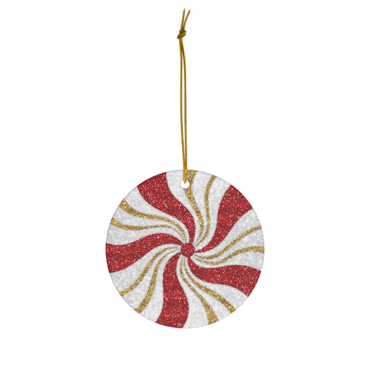 ~Red & Gold Peppermint Candy~ Ceramic Ornament