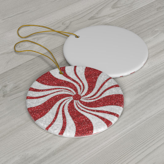 ~Red Spiral Peppermint Candy~ Ceramic Ornament
